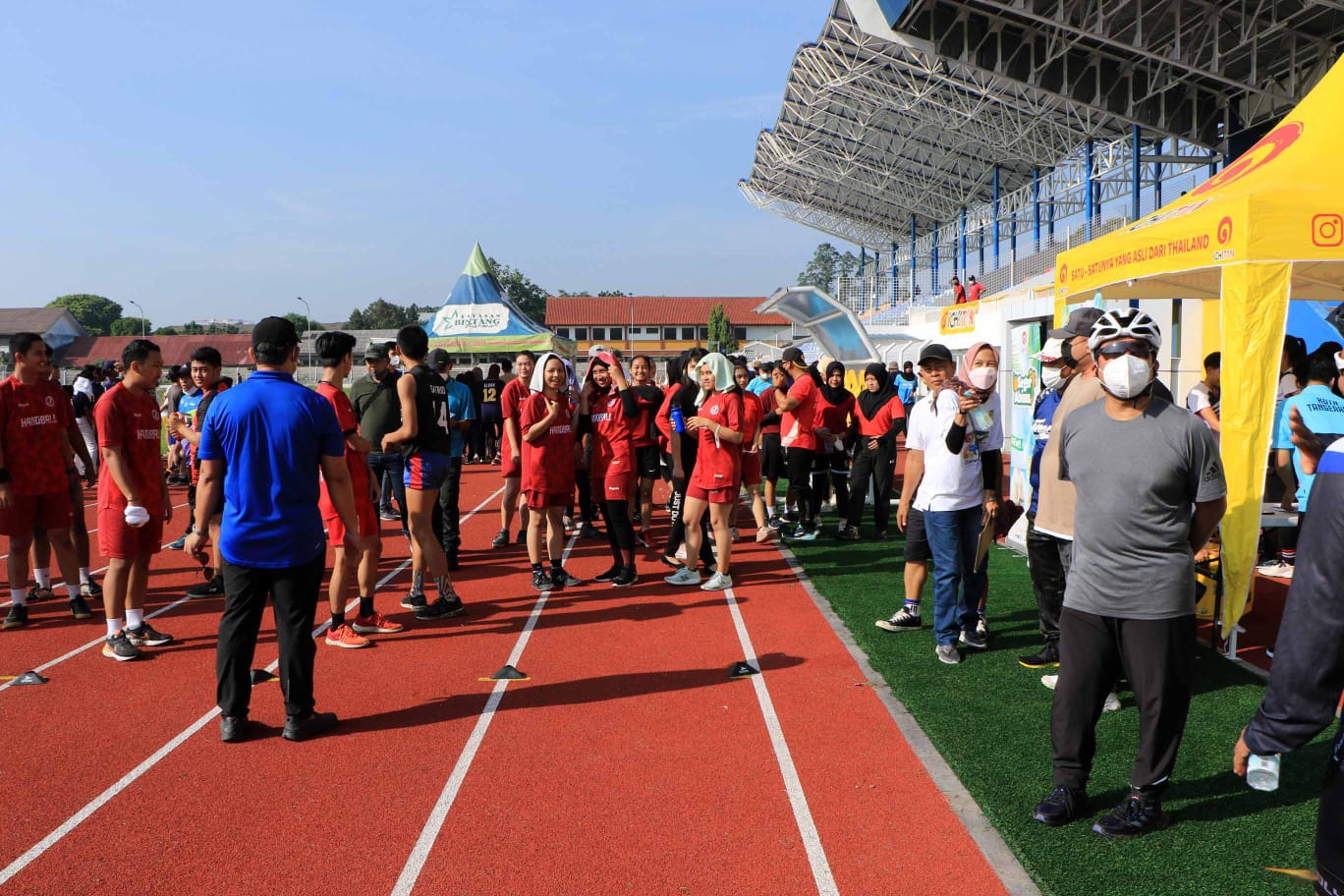 Dalam kesempatan tersebut, Arief turut memberikan semangat kepada ratusan atlet yang tengah mengikuti tes fisik sebagai bagian persiapan awal bagi para atlet yang akan berkompetisi.