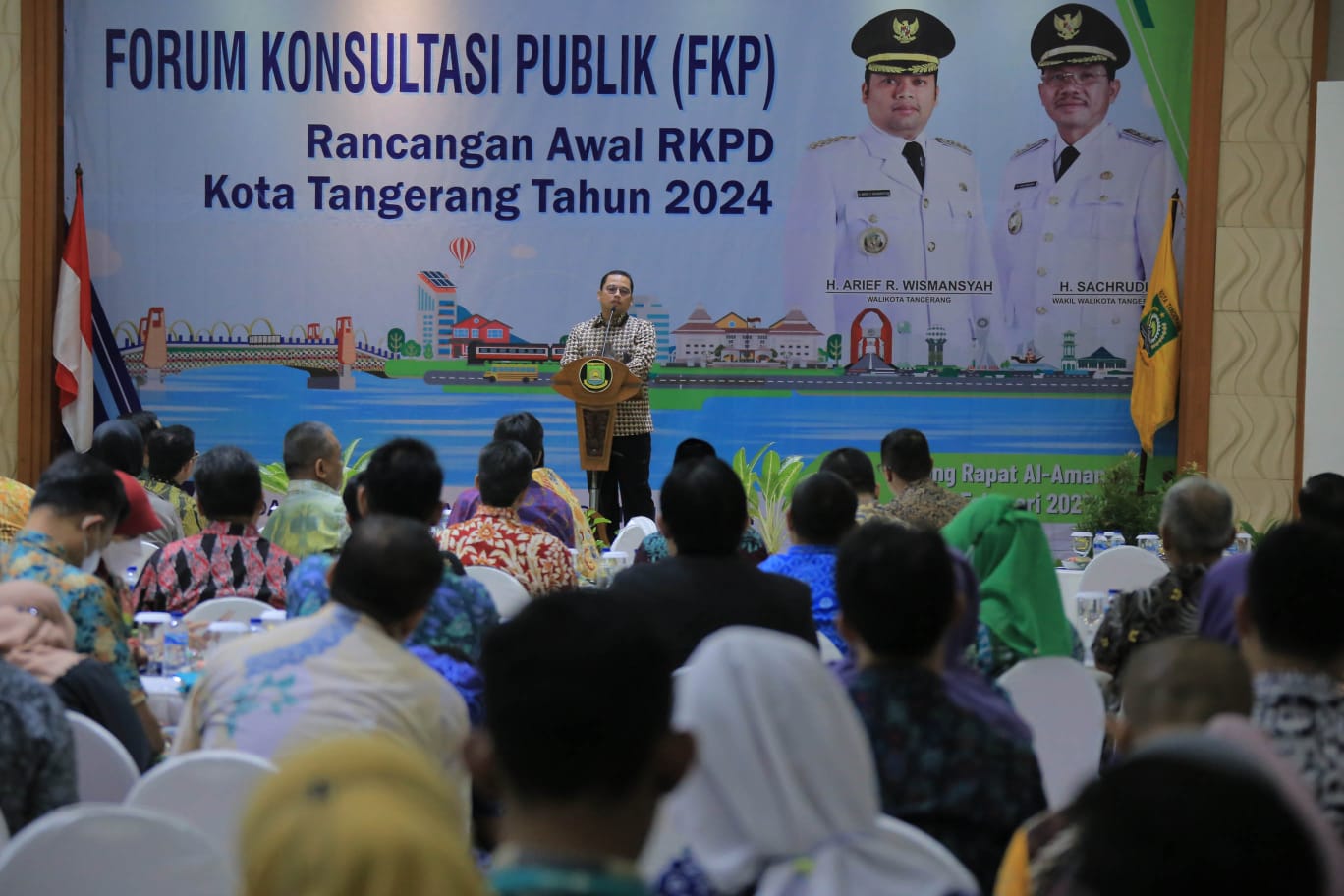 WANMEDIA.CO.ID, KOTA TANGERANG – Wali Kota Tangerang, H. Arief R Wismansyah didamping wakilnya menghadiri sekaligus membuka kegiatan Forum Konsultasi Publik (FKP) Rancangan Awal Rencana Kerja Pembangunan Daerah (RKPD) Tahun 2024 yang diselenggarakan oleh Badan Perencana Pembangunan Daerah Kota Tangerang bertempat di Aula Al-Amanah Gedung Pusat Pemerintahan (PUSPEM) Kota Tangerang, Kamis, (02/02/2023).