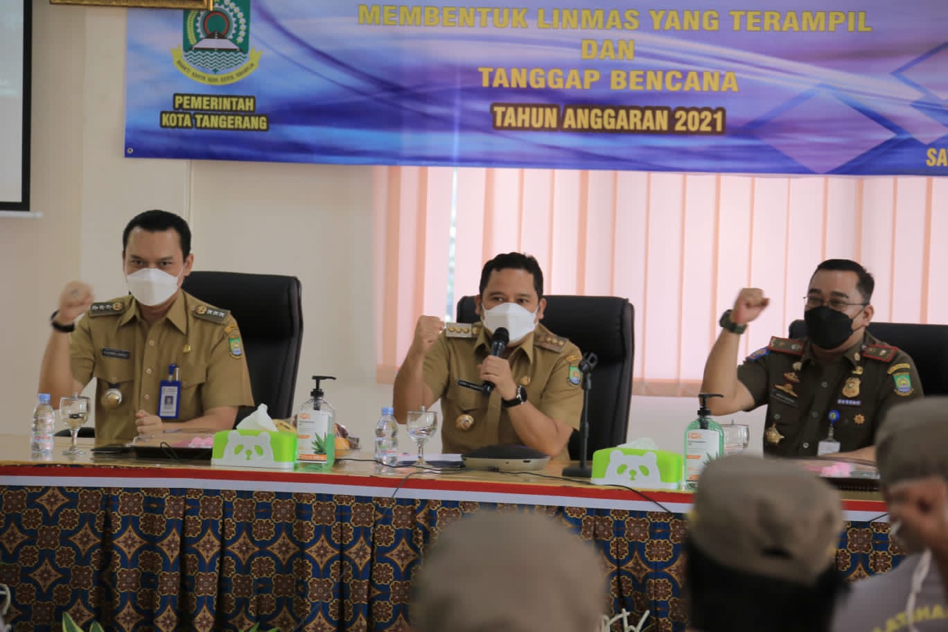 Wali Kota Tangerang H. Arief R. Wismansyah hadir memberikan arahan didampingi Kepala Satuan Polisi Pamong Praja Kota Tangerang Agus Henra serta Camat Benda Achmad Suhaely menyampaikan anggota Linmas harus bisa mengajak masyarakat dalam membangun kenyamanan dan ketentraman di lingkungannya.
