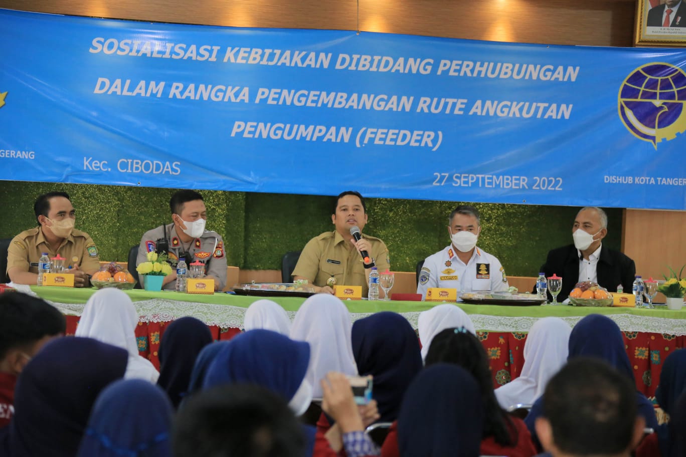 Hal tersebut disampaikan Wali Kota Tangerang H. Arief R. Wismansyah dalam acara Sosialisasi Kebijakan di Bidang Perhubungan Dalam Rangka Pengembangan Rute Angkutan Penumpang (Feeder) yang bertempat di Aula Kecamatan Cibodas, Selasa (27/9/22).